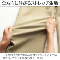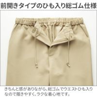 きちんと感のあるシルエット・デザインながら、動きやすさ、着心地の良さも備えた優秀なパンツ。ウエストの脇・後ろはゴム仕立てで、心地よくフィットします。全方向に伸縮するストレッチ素材を採用し、膝をついてかがむ動作をする際もつっぱり感が少なくスムーズに。涼しげな肌触りで軽やかな履き心地が特徴的で、吸水・防汚機能、phコントロール機能、UPF値50+のUVカット性能を搭載した高性能な生地を使用しています。