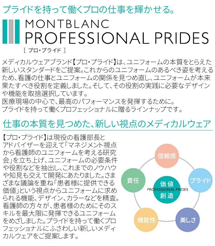 ミズノ、ワコール、ナガイレーベン、ホワイセル、モンブラン、ローラアシュレイ、ルミエールなど、人気ブランドを多数取り揃えています。エステやネイルサロンにお勤めの方向けのラグジュアリーなデザインもご用意しています。