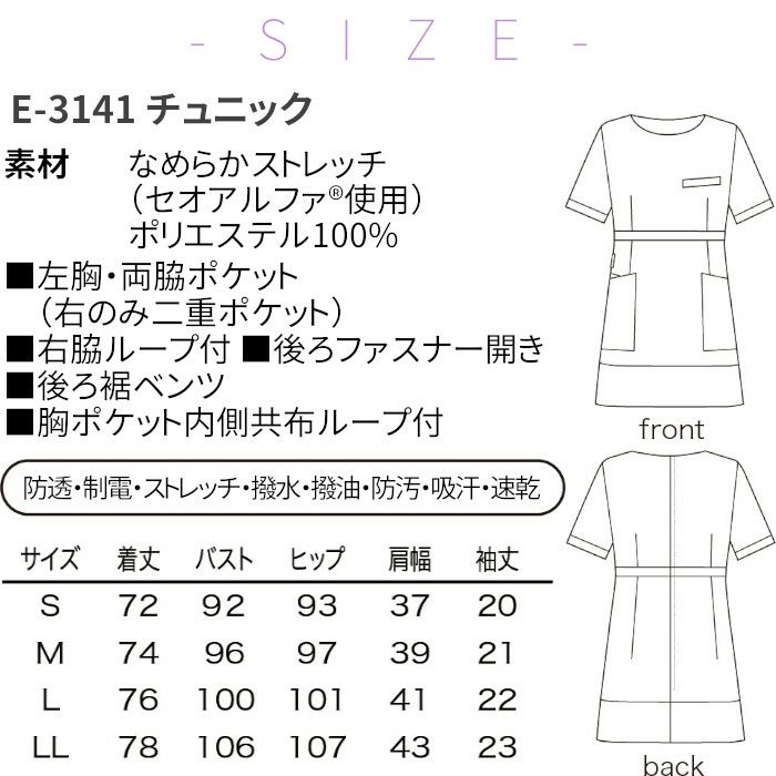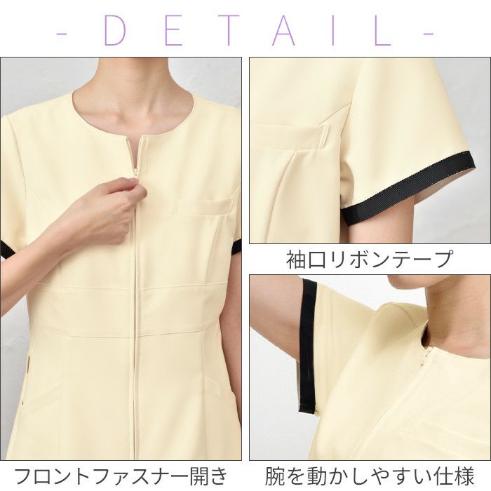 一方で、動きやすさも重要だけど女性らしいフェミニンなデザインも譲れない!という方におすすめなのが「医療用チュニック」です。身体のラインがきれいに見えるように計算されたシルエットやペプラムのようにふんわりと広がるデザインは、クリニックの雰囲気まで優しく華やかになったと、エステサロンやレディースクリニック、小児科等でお勤めの方に人気の白衣です。