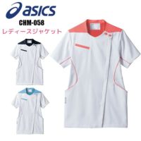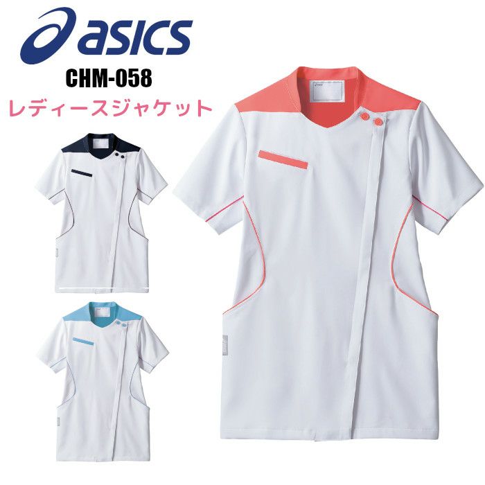 パイピングが目を引くデザイン 白衣 ジャケット 女性用 CHM058 asics