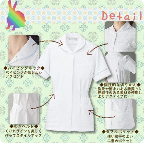一方で、動きやすさも重要だけど女性らしいフェミニンなデザインも譲れない!という方におすすめなのが「医療用チュニック」です。身体のラインがきれいに見えるように計算されたシルエットやペプラムのようにふんわりと広がるデザインは、クリニックの雰囲気まで優しく華やかになったと、エステサロンやレディースクリニック、小児科等でお勤めの方に人気の白衣です。