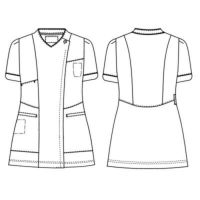 衿ぐりの配色パイピングと胸ボタン、きっちりとした腰ポケットが新しさを感じさせてくれるデザインです。