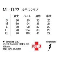 白衣 スクラブ 女性用 ML-1122 ナガイレーベン