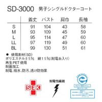 白衣 ドクターコート 男性用 SD-3000 ナガイレーベン