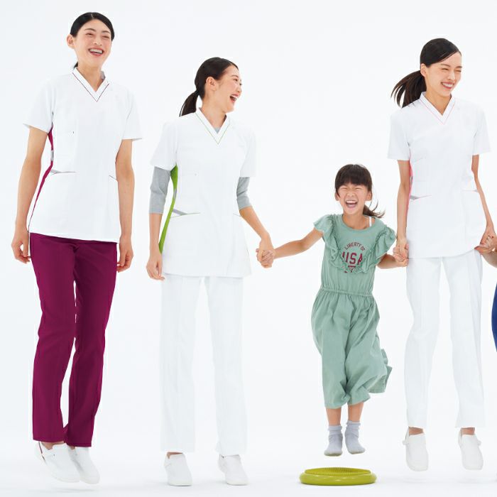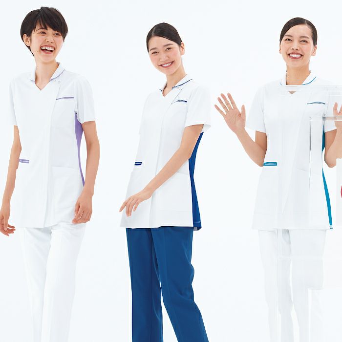 ナガイレーベンのスクラブ・白衣・ワンピースを買うならココ!ナース服が得意で、チュニックの種類も豊富です。カラースクラブにまだ抵抗のある方でも取り入れやすい、アクセントカラー付きの白スクラブもご用意しています。