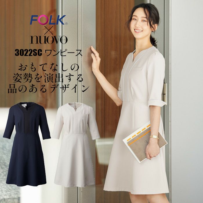 メディカルからビューティまで活躍するデザイン 白衣 エステ ワンピース 3022SC FOLK