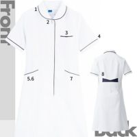 バックスタイルが特徴的な白衣 白衣 ワンピース パイピング WH12000 WHISEL