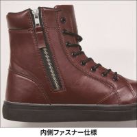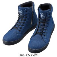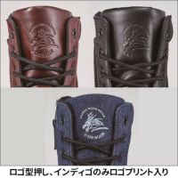 内側にサイドファスナーが施してあり、脱ぎ履きがしやすいブーツ型安全靴です。ベロ部分のロゴの型押し(インディゴのみプリント)もオシャレのポイントです。