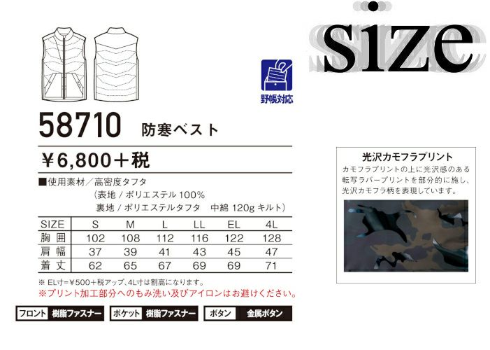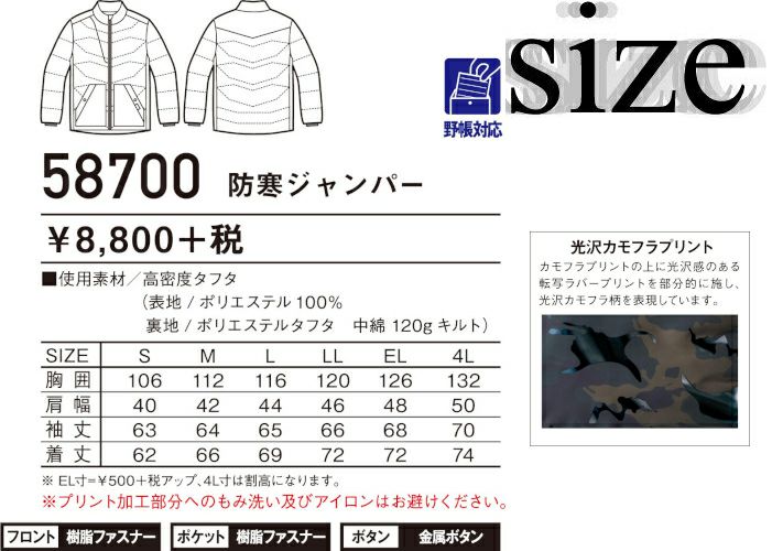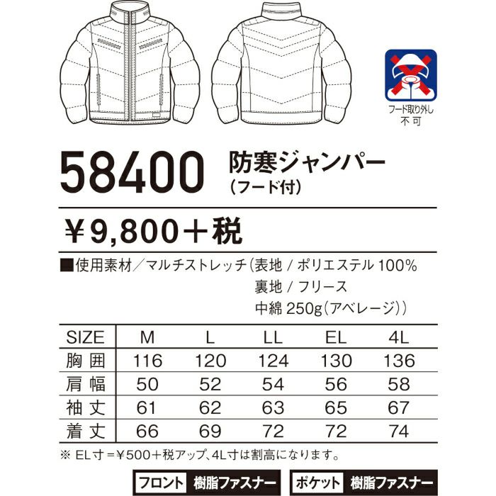防寒着 軽防寒 防寒ジャンパー 58500 自重堂