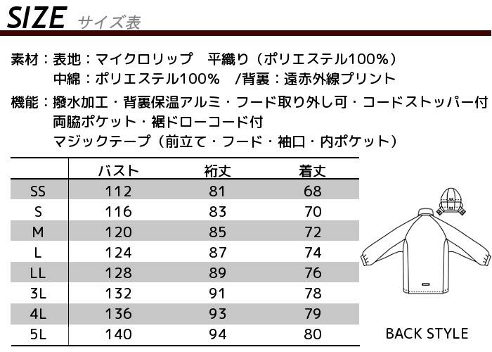 防寒着 軽防寒 防寒ブルゾン 158 XEBEC