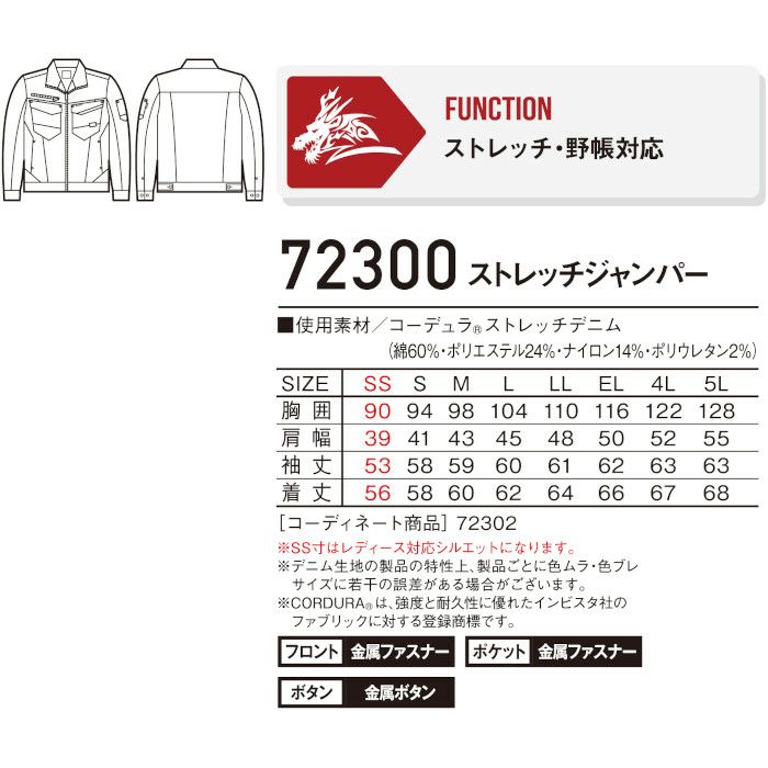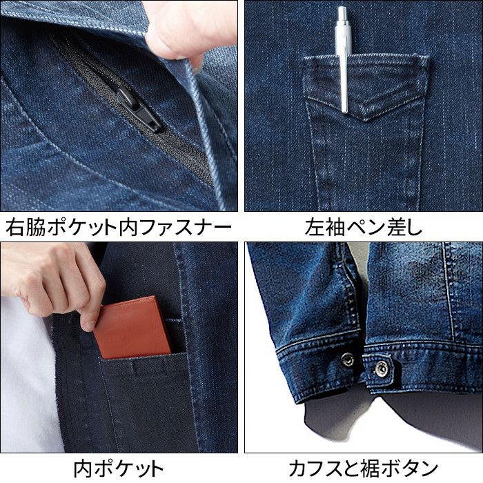 他の画像を見る おしゃれなデニム作業着にストレッチ性と優れた強度を付加 作業服 ジャケット デニム ストレッチ 53000 自重堂 CORDURA コーデュラ 定価 ¥ 12,100 のところ 当店特別価格 ¥ 6,050 税込 詳細を見る お気に入りに登録する