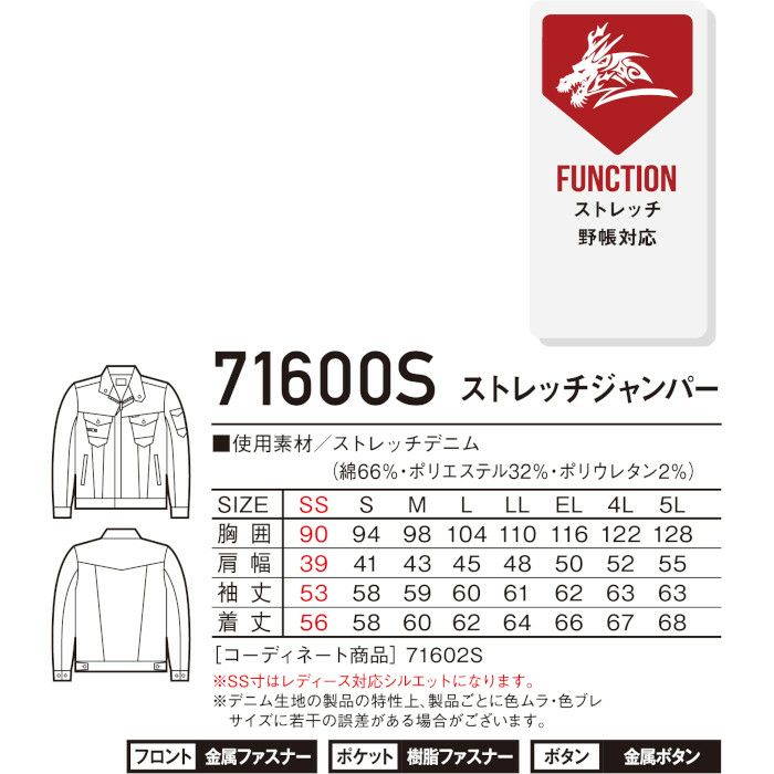 他の画像を見る 伸びやかなストレッチデニムを使用した本格派作業着 作業服 ジャケット デニム ストレッチ スリム 71600S 自重堂 定価 ¥ 9,680 のところ 当店特別価格 ¥ 4,840 税込 詳細を見る お気に入りに登録する