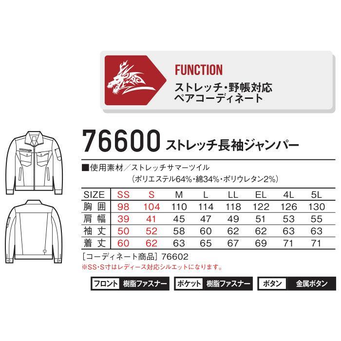 他の画像を見る 頑丈な素材にストレッチ性を加えた使いやすい作業服 作業着 ジャケット 長袖 ストレッチ 76600 Z-DRAGON ジィードラゴン 定価 ¥ 9,460 のところ 当店特別価格 ¥ 4,730 税込 詳細を見る お気に入りに登録する