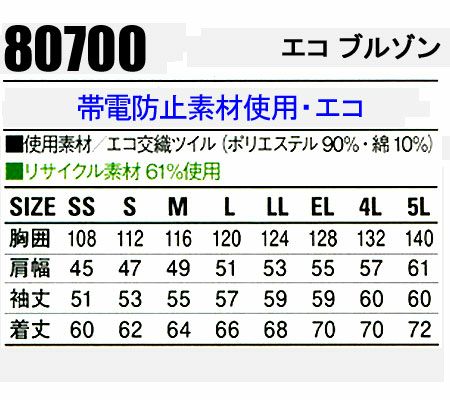 作業服 ブルゾン ストレッチ 80200 自重堂