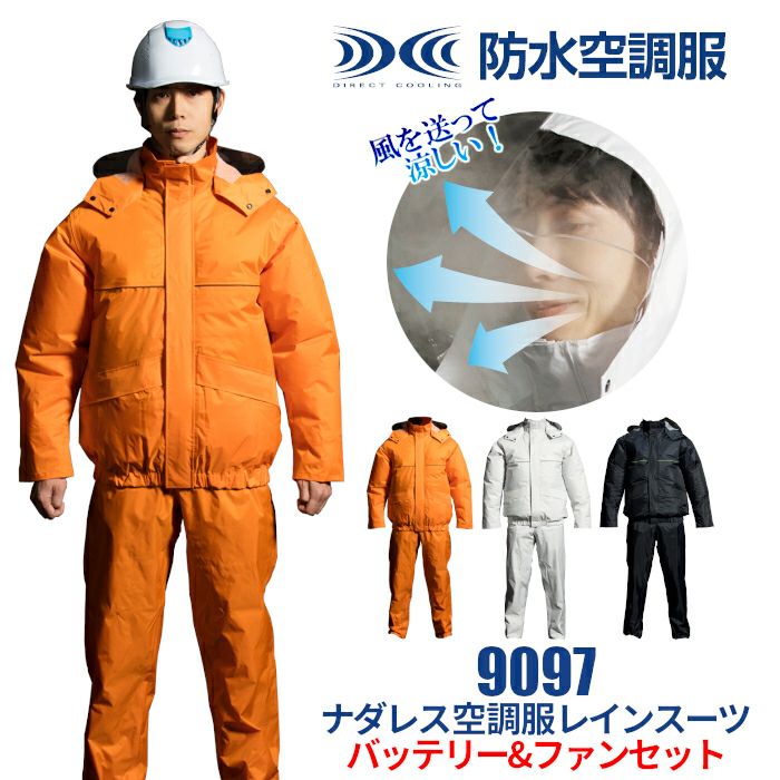 衣類内に風を送って熱中症対策!ジメジメを解決するレインスーツ ナダレス空調服レインスーツ バッテリー&ファンセット 9097