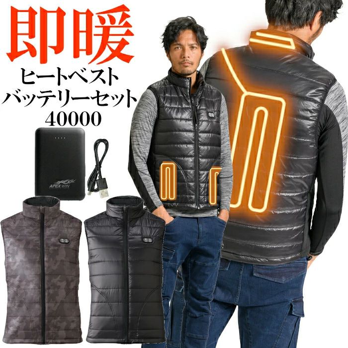 スイッチオンですぐにぽかぽか!話題の電熱ベスト 防寒 ヒート ベスト 発熱 電熱 バッテリー セット 40000 アタックベース