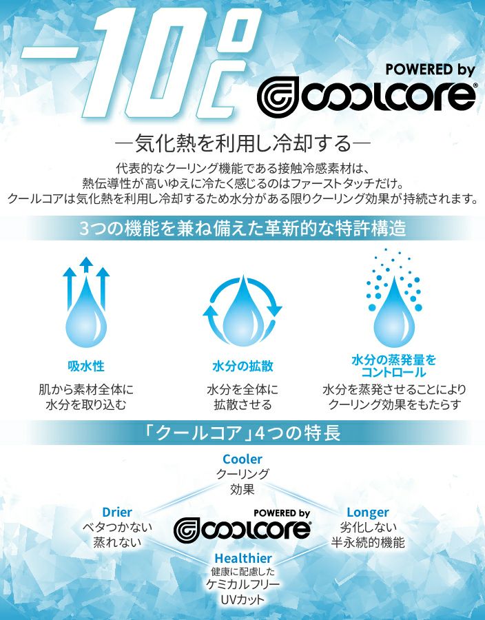 他の画像を見る 気化熱で体を冷やす防臭・抗菌加工付冷感インナー COOLCORE 半袖インナー ポリジン 抗菌 防臭 ROCKY RC3906 当店特別価格 ¥ 3,190 税込 詳細を見る お気に入りに登録する