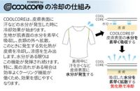 皮膚上の水分を素材に素早く取り込み、拡散する際の気化熱で体を冷却します。