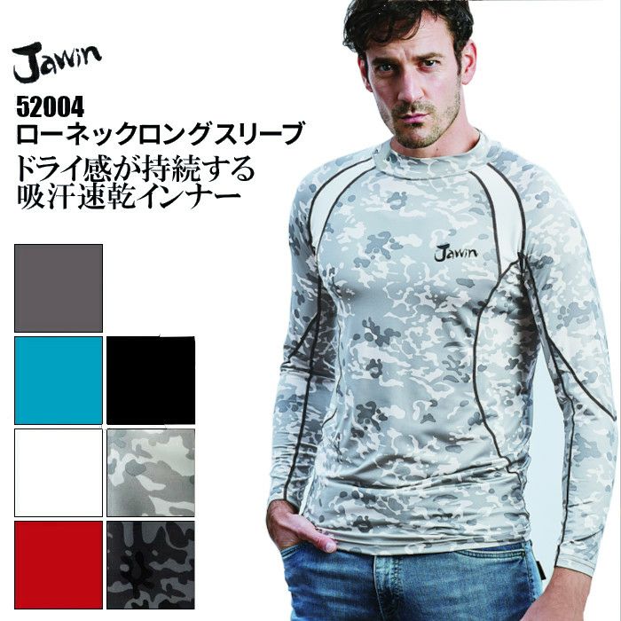 豊富なカラー展開が嬉しい吸汗速乾インナー 作業着 インナー 長袖 ローネック 春 夏 ストレッチ 52004 Jawin ジャウィン