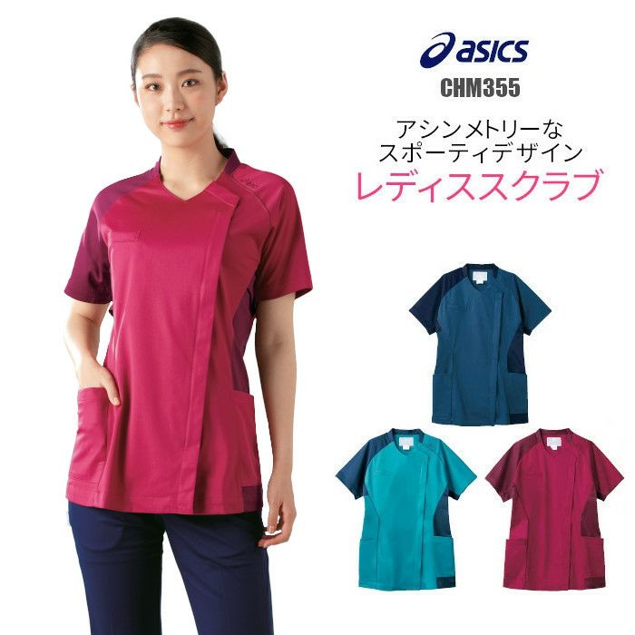 アシンメトリーなデザインが個性的な印象 アシックス 白衣 スクラブ 女性用 CHM355 asics