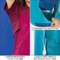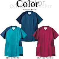 アシンメトリーな配色が個性的でスタイリッシュなスクラブ。従来品のトリコットの3倍伸縮性がある生地を採用し、伸びやかで動きやすいのが特徴です。脇下にベンチレーションを取り入れ、衣類内の通気性を高めました。
