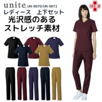 ユナイト 光沢感が美しいストレッチ生地 レディス 上下セット 白衣 スクラブ パンツ セット UN-0070/UN-0072 unite 女性用