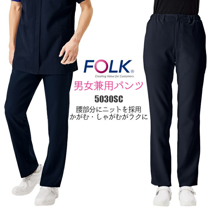 動きやすく蒸れにくい腰ニット切り替えのナースパンツ パンツ 医療用 介護 男女兼用 白衣 5030SC FOLK フォーク