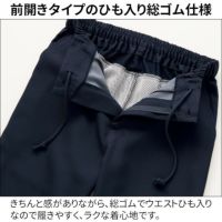 きちんと感のあるシルエット・デザインながら、動きやすさ、着心地の良さも備えた優秀なパンツ。ウエストの脇・後ろはゴム仕立てで、心地よくフィットします。腰部分は伸縮性に富んだニット素材に切り替えて、身体をかがめる、しゃがむなど大きな動作をする際もつっぱり感が少ないのが嬉しい。また、ニットの通気性の良さを活かして、衣類内の熱や不快感を素早く排出します。