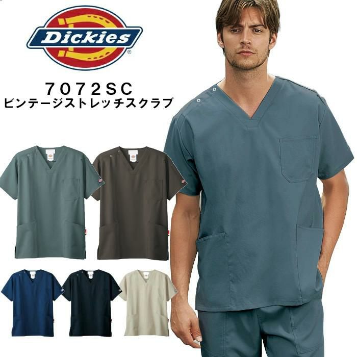 Dickiesコラボスクラブ ビンテージ風の味のあるデザイン 白衣 スクラブ 男性用 医療用 Dickies 7072SC