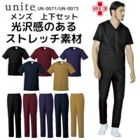 ユナイト 光沢感が美しいストレッチ生地 メンズ 上下セット 白衣 スクラブ パンツ セット UN-0071/UN-0073 unite 男性用