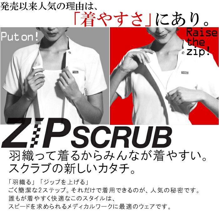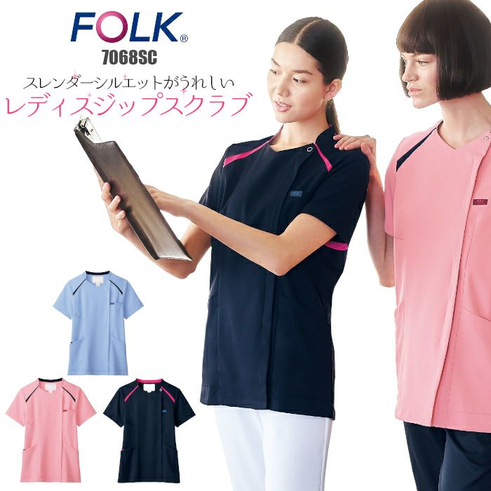 • 人気商品!カラー切り替えがおしゃれな女性用ZIPスクラブFOLK 7023SC