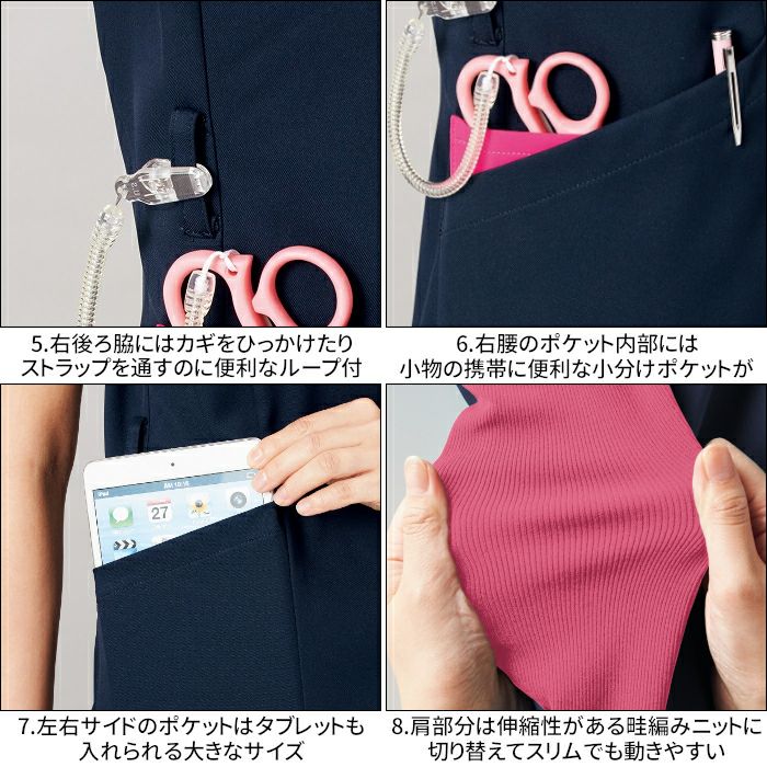 • ニット切り替えで着心地快適な女性用スクラブFOLK 7038SC