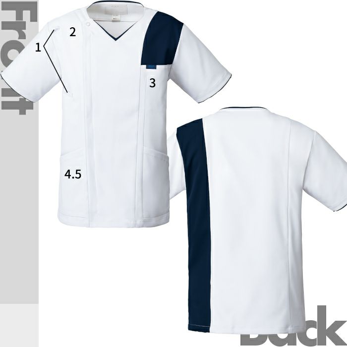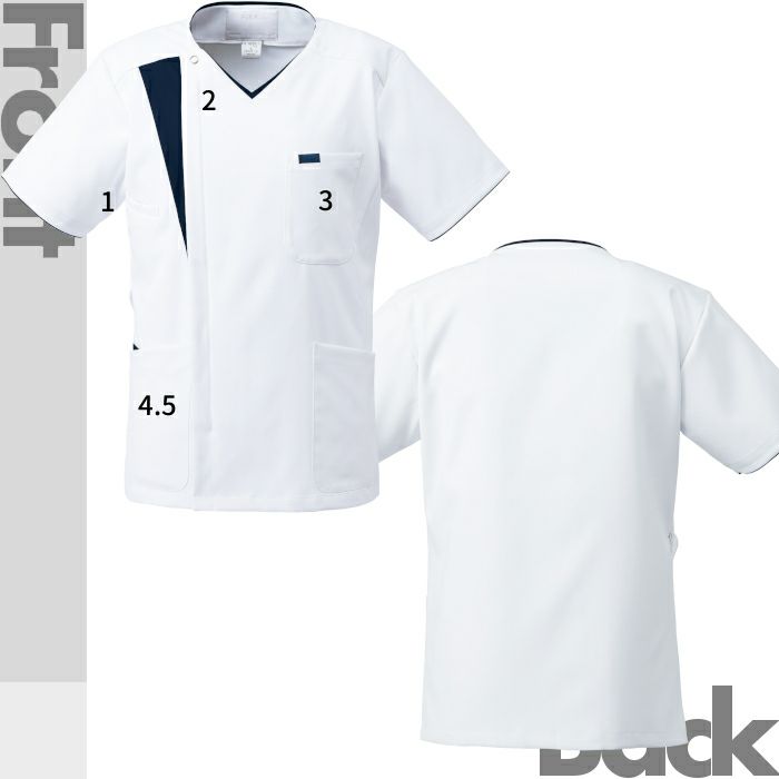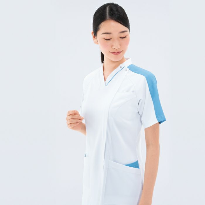• 襟付きデザインで白衣に近いイメージの白ベースのスクラブ LH-6272