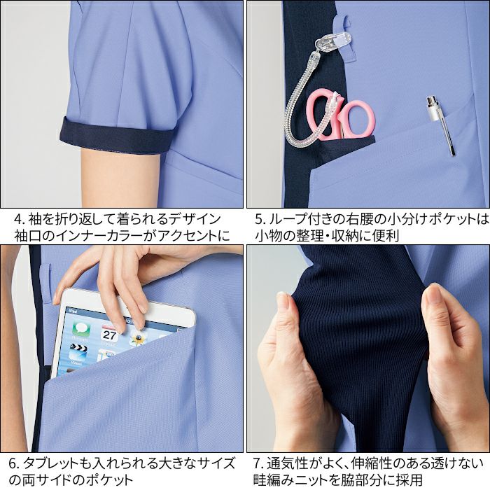 • ニット切り替えで着心地快適な女性用スクラブFOLK 7038SC