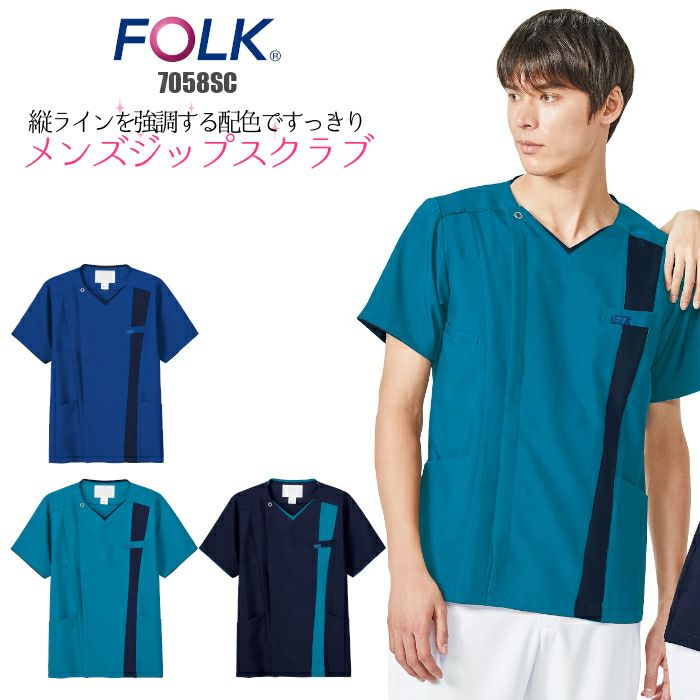 • おしゃれな男性用のZIPスクラブFOLK 7025SC