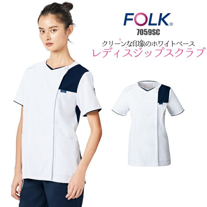 • 人気商品!カラー切り替えがおしゃれな女性用ZIPスクラブFOLK 7023SC