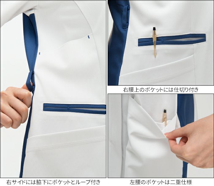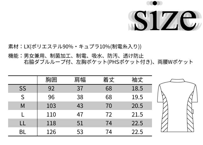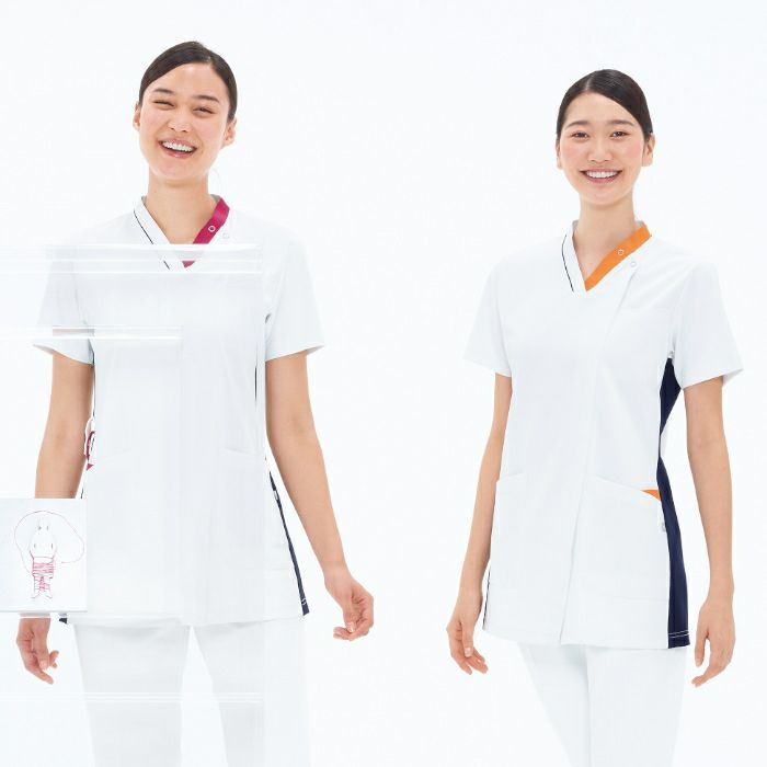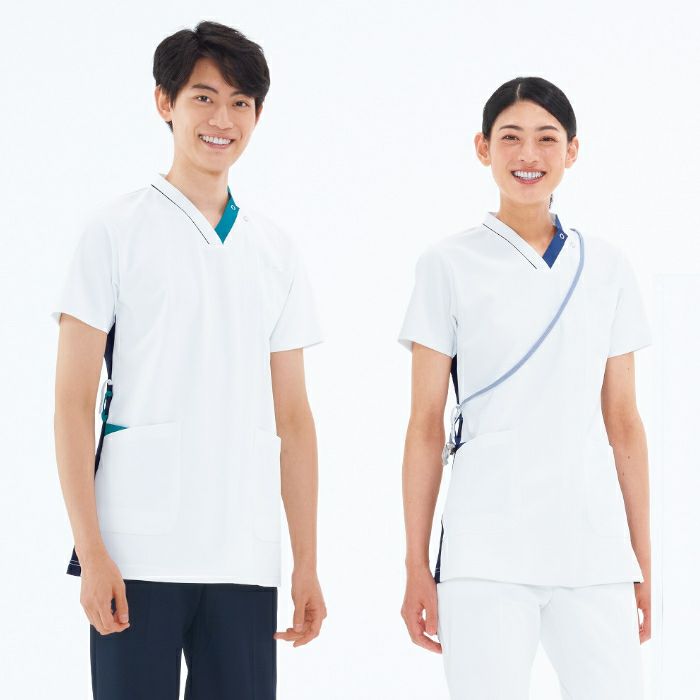 • 襟付きデザインで白衣に近いイメージの白ベースのスクラブ LH-6272