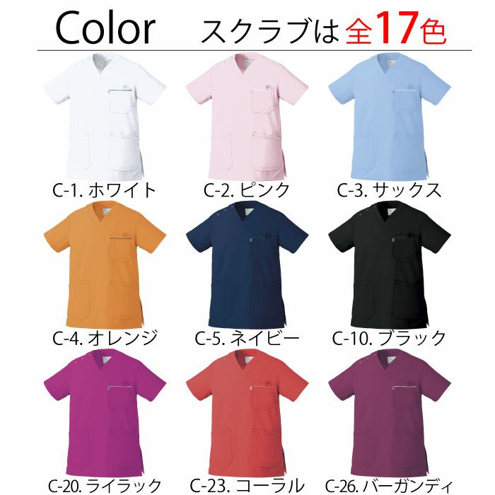 • サイドにカラー切り替えあり、白ベースのスクラブ whisel WH12085