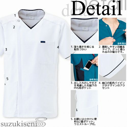 • 白衣素材で作られたメンズ用白ベースのスクラブ FOLK 1016EW