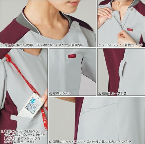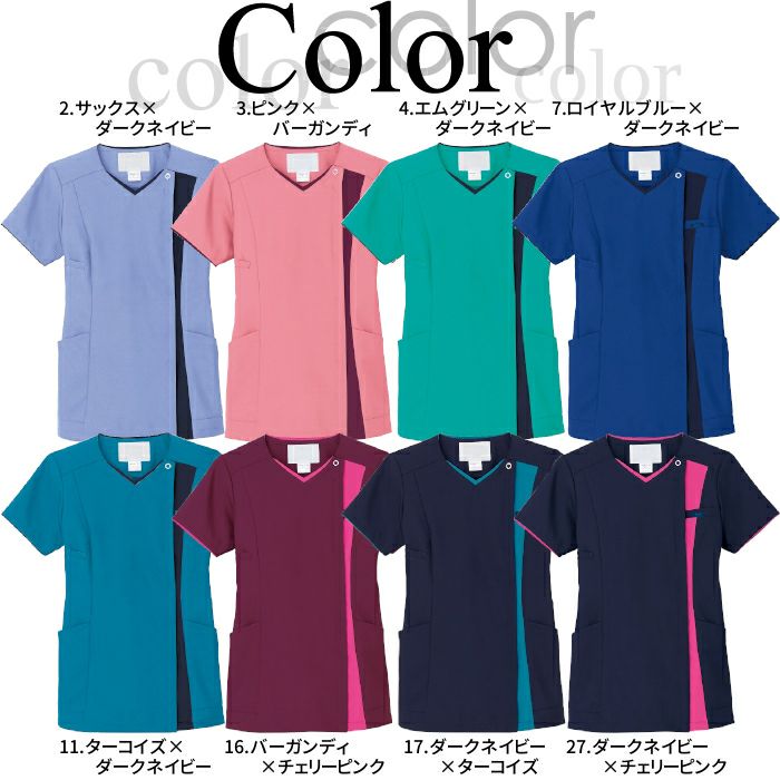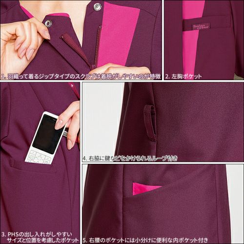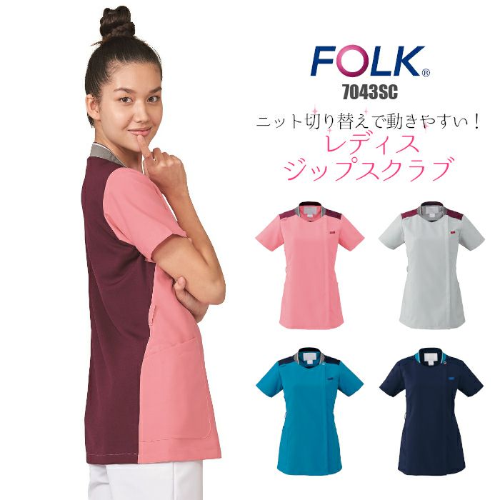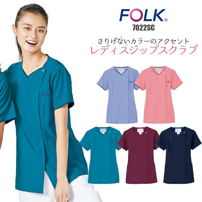 • 人気商品!カラー切り替えがおしゃれな女性用ZIPスクラブFOLK 7023SC