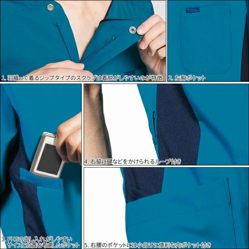 • おしゃれな男性用のZIPスクラブFOLK 7025SC