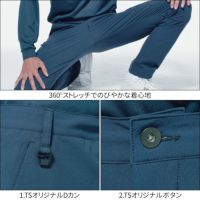 スポーティテイストな作業服を手掛けるTS designからおしゃれなレディスパンツが新登場!一般的な類似品に比べコストをぐんと抑え、ロープライスを実現!しかもストレッチ素材でタイトにきまる