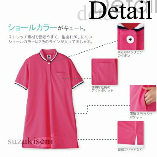 ナガイレーベン LH-6212メイクや髪が崩れずに着られる前開きタイプ。ポケット付きなのも◎