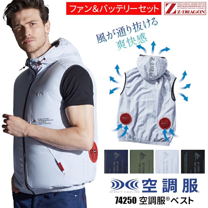 夏場の熱中症対策に!両腰部分にファンを取り付けるための穴あき加工をした画期的なベストと、すぐに始められるファン&バッテリーが付いた便利なセットです。
