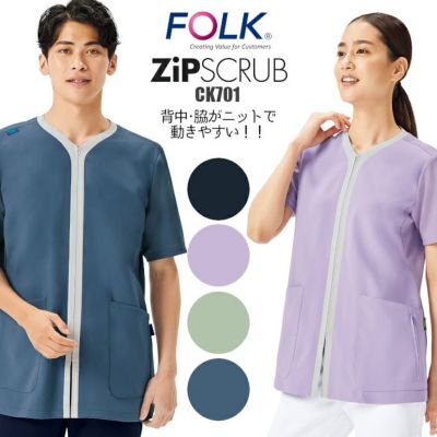 スクラブ ファスナー 医療用 介護 男女兼用 白衣 CK701 FOLK フォークのレビューを書く