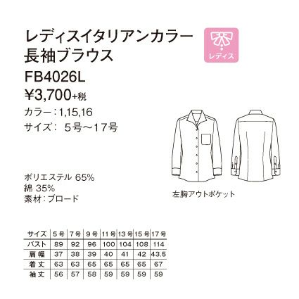レディスイタリアンカラー長袖ブラウス FB4026L ボンマックス