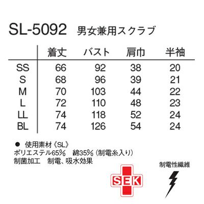白衣 スクラブ 男女兼用 SL-5092 ナガイレーベン