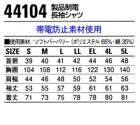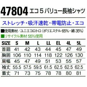 作業服 長袖シャツ ストレッチ 47804 自重堂