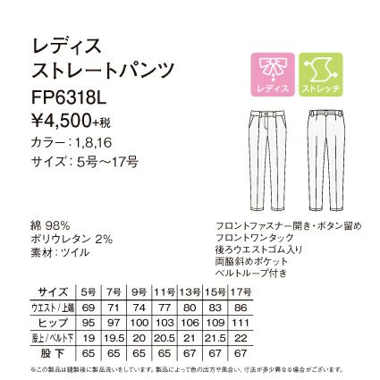 レディススーパーストレッチパンツ FP6319L ボンマックス