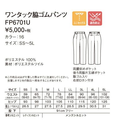 ワンタック脇ゴムパンツ FP6701U ボンマックス